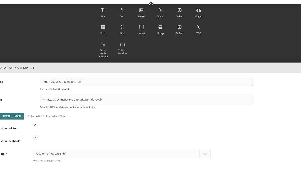 Auf unserer Webseite kannst du einfache Social Media Vorlagen erstellen – füge deiner Kampagne ein "Social Media Template" hinzu! Die gute Nachricht für Datenschützer:innen: Entsprechende Scripte & Verbindungen zu Servern von Facebook & Twitter werden erst hergestellt, wenn Nutzer:innen auf den jeweiligen Button zum Posten klicken.