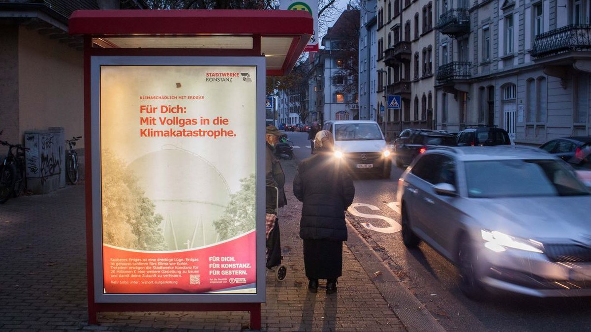 Ein bisschen Verarsche, wenn die Erde fast am Arsch ist: Das ist den Rebelli in Konstanz gut gelungen. Mit einer täuschend echten Reklame, die aufräumt mit einer dreckigen Lüge: Erdgas ist KEINE saubere Alternative, sondern steuert uns mit „Vollgas in die Klimakatastrophe”.