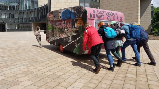 Willy Brandt wollte „Mehr Demokratie wagen” – hat leider in den letzten 50 Jahren nicht so richtig geklappt. 2021 wirds so langsam drängend. „Mehr Demokratie” übersetzen wir zu: Bürger:innenversammlungen und eine konsequente öffentliche Diskussion für mehr Klimagerechtigkeit! Solange das noch nicht läuft, bringen XR Rebelli die Dinge ins Stocken: wie im April auf der Willy-Brandt-Straße in Hamburg. Damit das nach 50 Jahren endlich doch noch was wird.