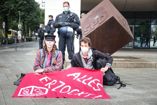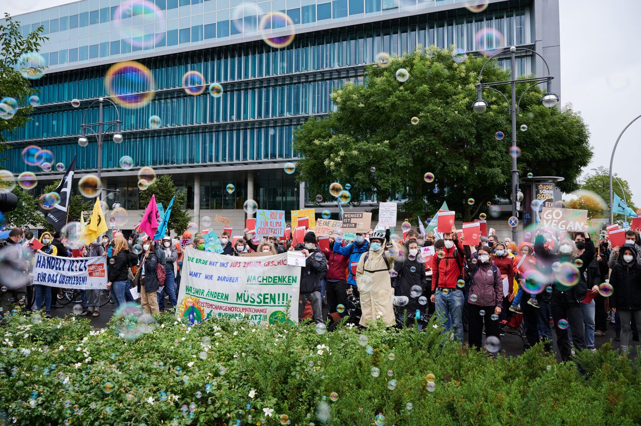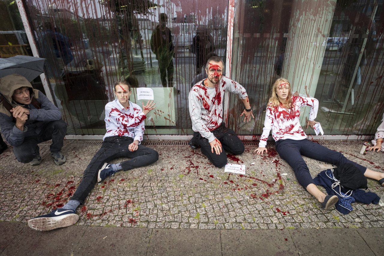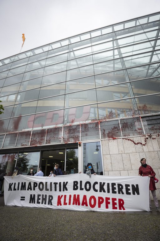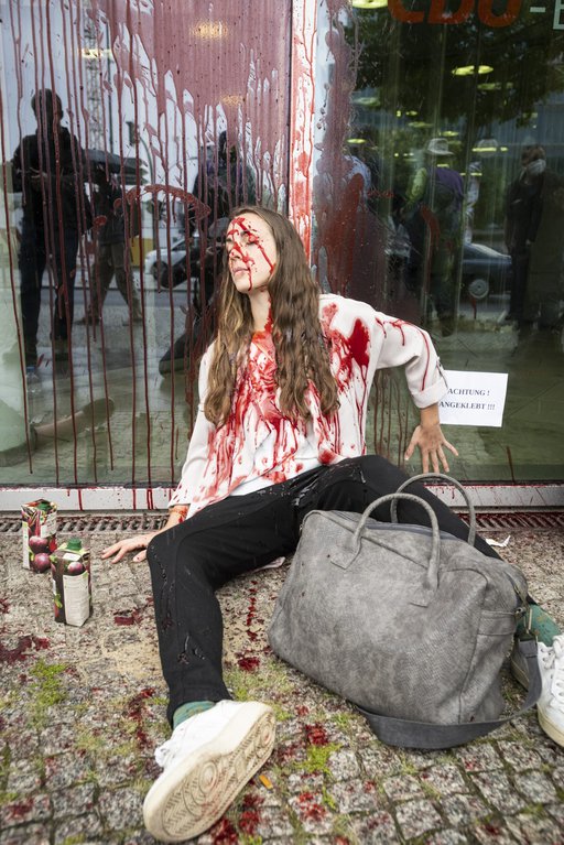 Eine Aktion an der SPD Zentrale wird kurzfristig durch die Polizei verhindert, während an der CDU Zentrale gegen 13:00 Uhr Kunstblut an die Fassade gesprüht wird. Einige Aktivist:innen haben sich an die Scheibe geklebt. Zwei Stunden später sammeln sich Demoteilnehmern:innen auf der anderen Straßenseite.