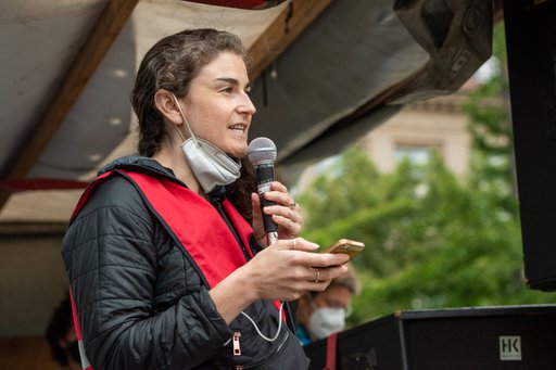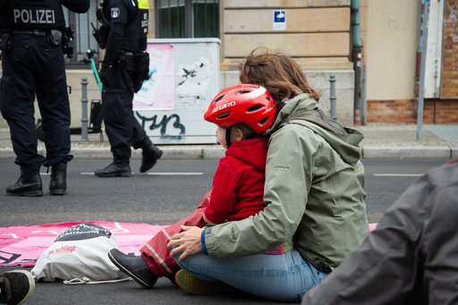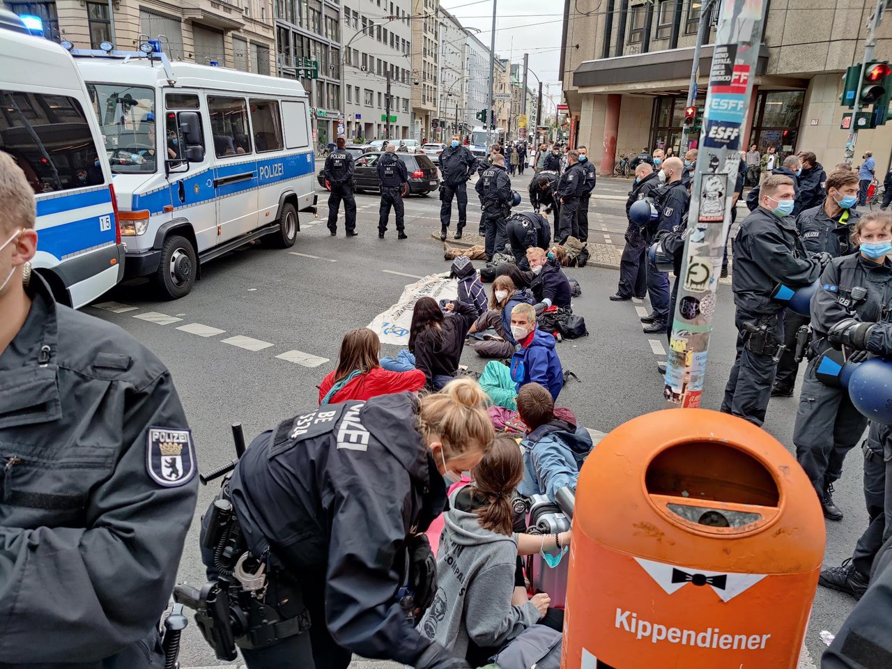 Am Invalidenpark findet der Klimaprotestzug um 19:00 seinen Abschluss mit Redebeiträgen und einer Reflexionsrunde zu gewaltvollen Taktiken seitens der Polizei, die Aktivist:innen in den letzten beiden Tagen immer wieder erlebt haben. Während der Abschlusskundgebung ketten sich gegen 19:30 Uhr noch mehrere Menschen auf der Invalidenstraße an.
