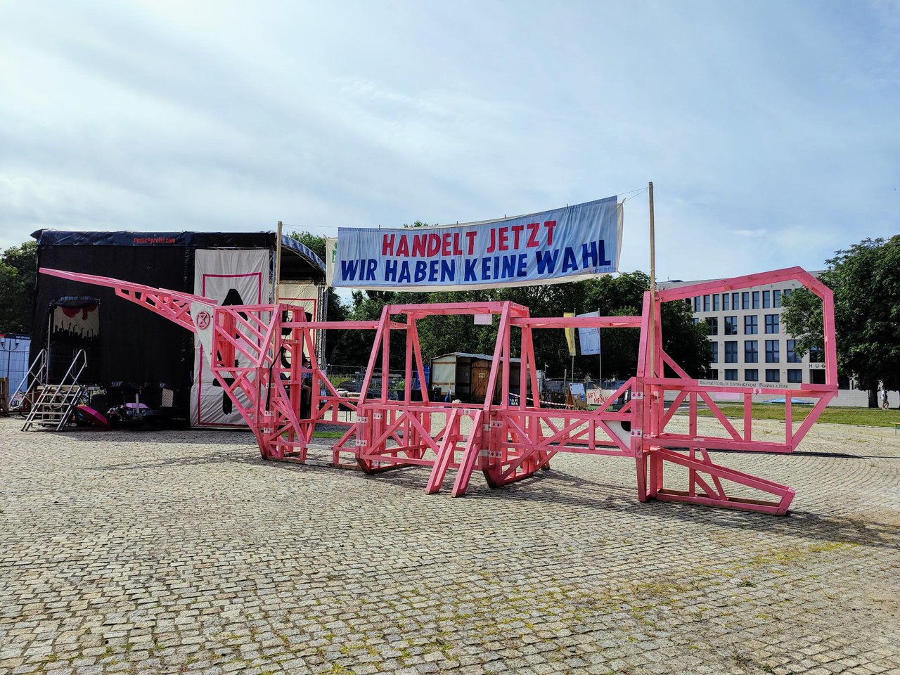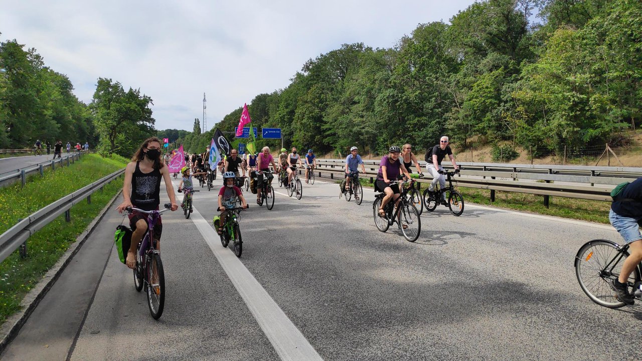 Am Nachmittag trifft die Fahrraddemo aus Potsdam zur Abschlusskundgebung ein. Der Wal wartet schon und die Bühne bietet noch bis in den Abend Programm.
