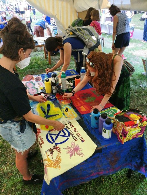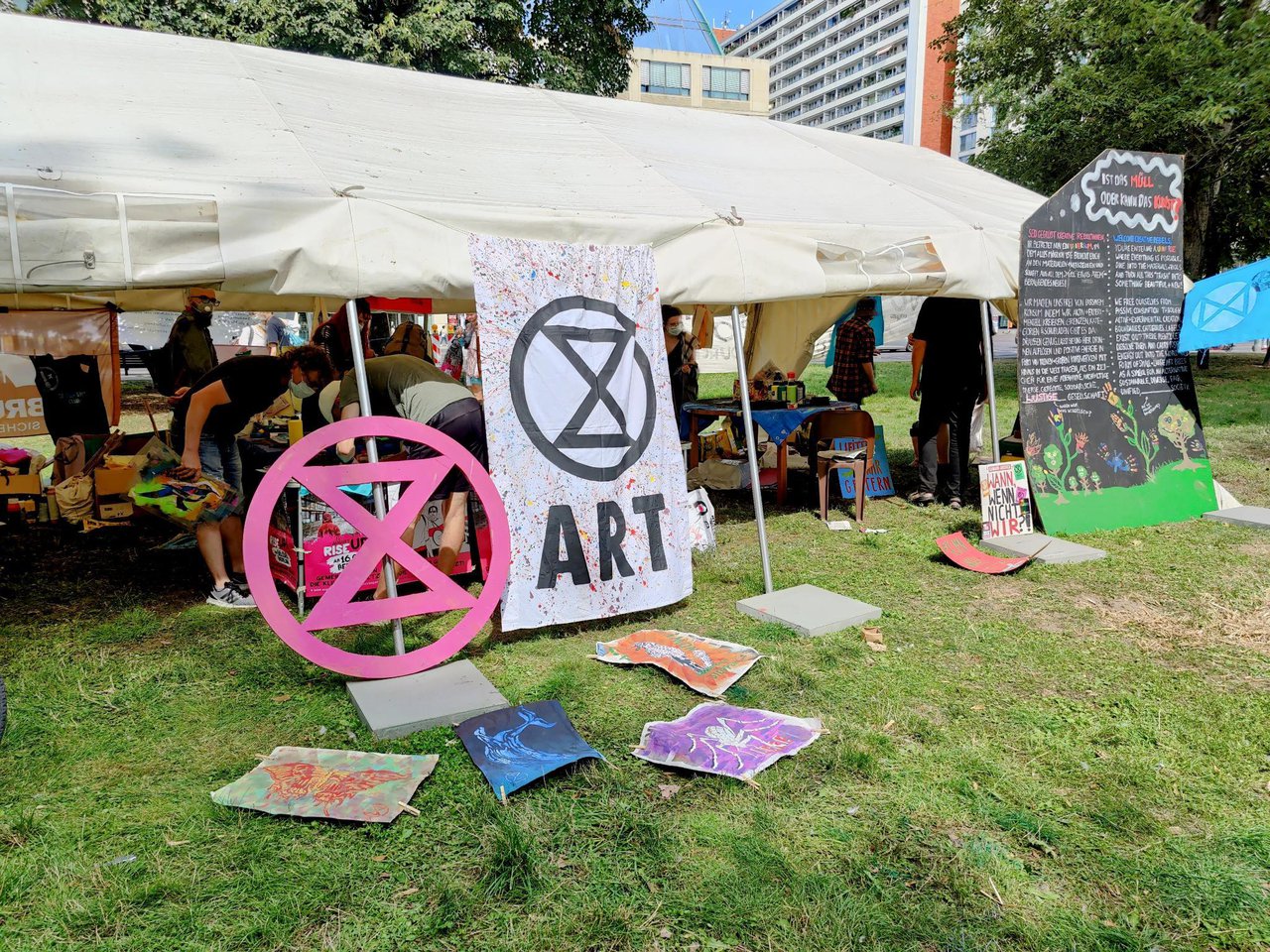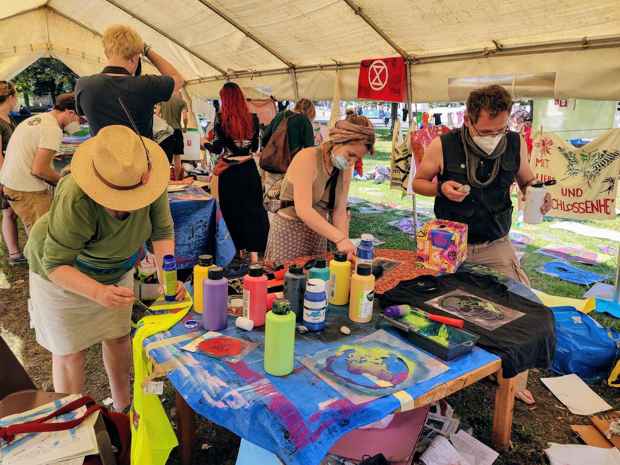 Das Kunstzelt ist weiter ein Publikumsmagnet, hier toben sich alle Altersstufen aus. Bei der Menge an Inspiration und Werkzeugen fällt die Auswahl schwer – also doch lieber zwei Fahnen basteln!