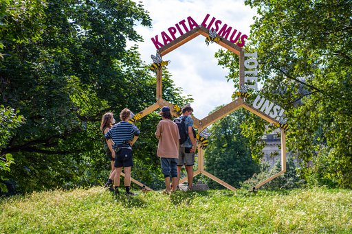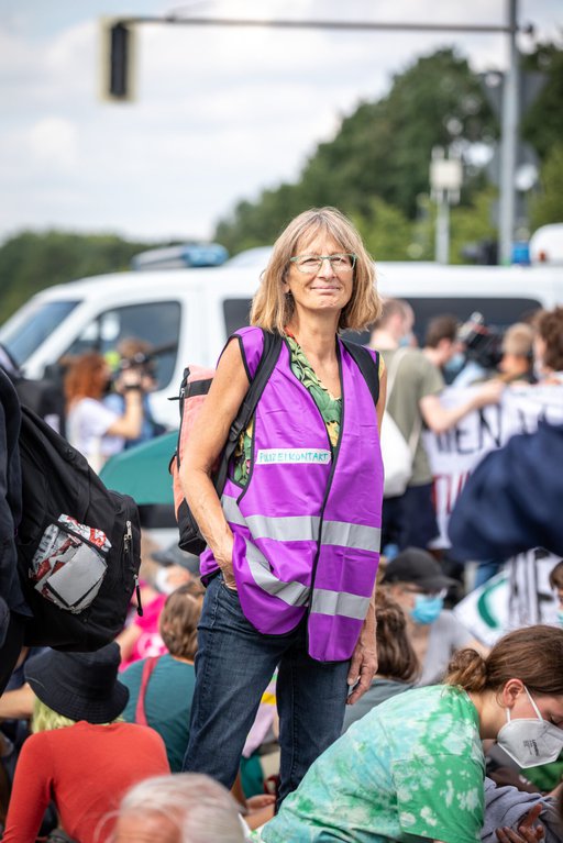 Passant:innen wundern sich, warum der Park gesperrt ist: „Deswegen?!“ – wir führen mit guter Laune Gespräche über Klimagerechtigkeit und Aktivismus vor dem Park. Die Polizei stoppt eine Wasserlieferung und nimmt den Fahrer mit, alle Eingänge sind abgeriegelt. Ein LKW mit eingebauter Bühne wird gegen 16:00 Uhr umstellt, Aktivist:innen versuchen mit Sitzblockaden ein Rausfahren zu verhindern und werden teilweise recht grob vom Weg gezerrt. Schlussendlich fährt der LKW ab.