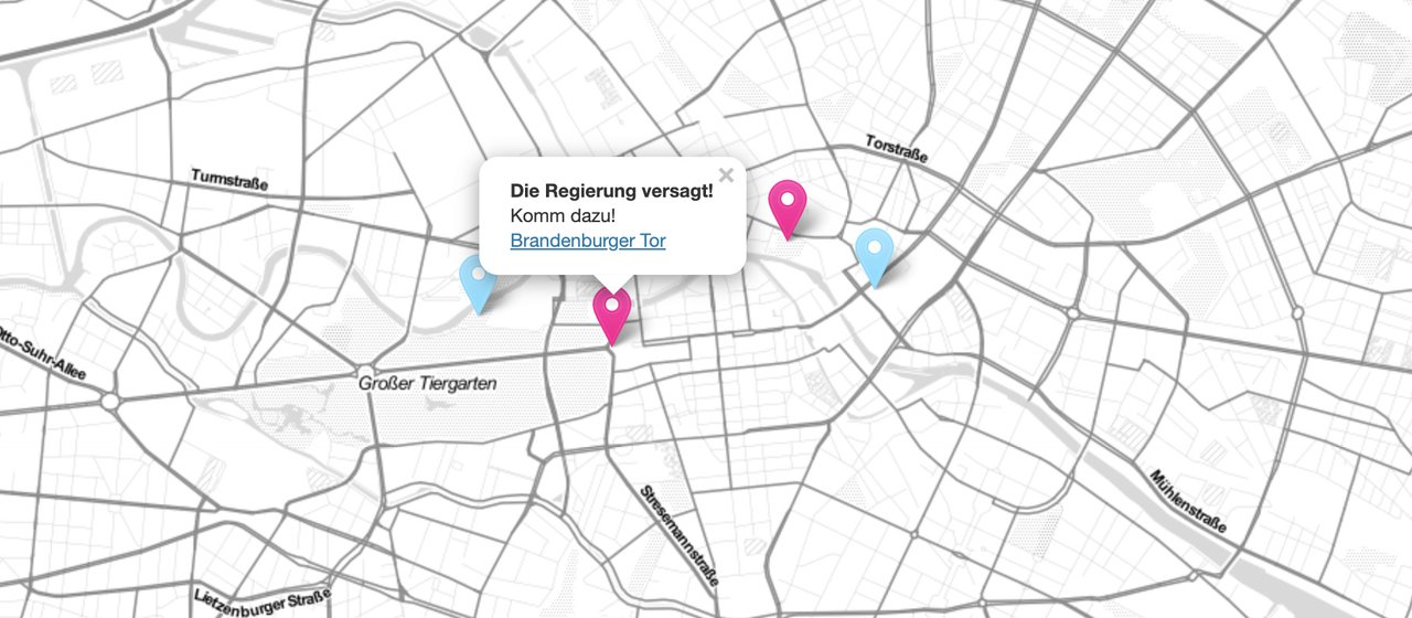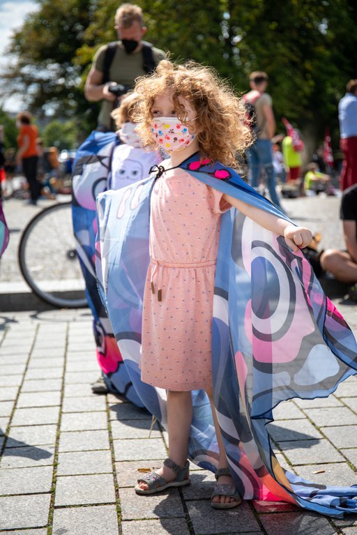 Auf dem Pariser Platz findet unbeirrt davon ein buntes Programm statt mit Gruppen wie der Discobedience, einem Die In oder den Red Rebels. Richtung Tierpark tragen Banner die Notlage und unsere Forderungen nach außen, um die Blockade herum schwirren Medienteams und geben Interviews.