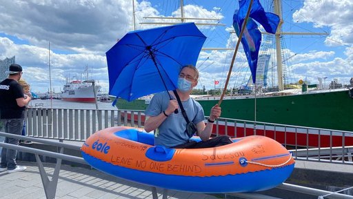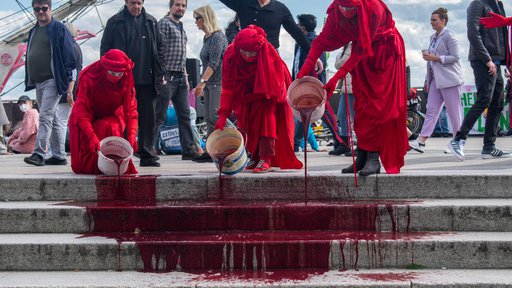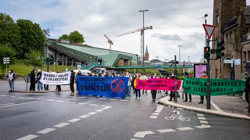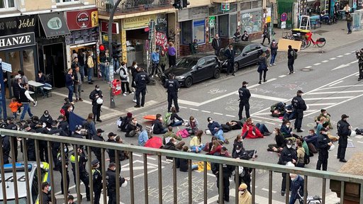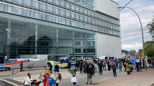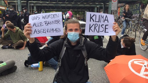 Unter dem Motto „Uns steht das Wasser bis zum Hals“ blockieren ca. 40 Rebell:innen die Sternschanze. Die Aktivist:innen fordern vom Hamburger Senat ambitionierte Klimapolitik. „Durch die derzeitige Klimapolitik des Hamburger Senats werden Bauern im Alten Land schon bald mit gravierenden Ernteausfällen zu kämpfen haben. Zudem wird durch den Meeresspiegelanstieg und durch die fatale Elbvertiefung den Apfelbauern ausschließlich zur Bewässerung ungeeignetes Salzwasser zur Verfügung stehen. Dies ist nur eine von unzähligen, globalen Auswirkungen der Klimakatastrophe, die auch bei uns zu Lebensmittelknappheit führen wird“, sagt der Pressesprecher der Aktion.