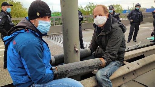 Rebell:innen stören erneut den Hafenverkehr auf der Köhlbrandbrücke mit einem Lock-On, trotz massiver Polizeipräsenz an allen Enden der Brücke gelangen vier Aktivist:innen auf die Fahrbahn. "Die Aktion richtet sich gegen die aktuelle Klimapolitik, da unsere Politiker anscheinend immer noch keine Vorstellung davon haben, wie drastisch der Unterschied zwischen einer 1,5- und 2-Grad heißeren Welt ist.“, sagt einer der angeketteten Rebell:innen.
