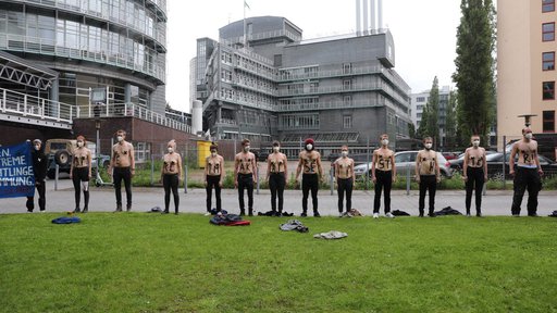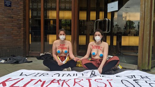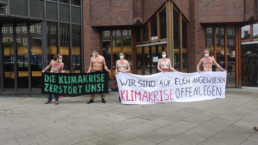 Klima-Aktivisten protestieren halbnackt vor Medienhäusern