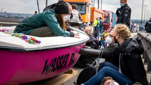 Extinction-Rebellion-Aktivisten besetzen Köhlbrandbrücke