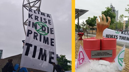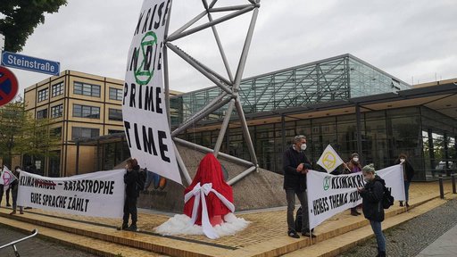 "Klimakrise in die Primetime": Aktivisten fordern den MDR mit Denkmal zum Handeln auf