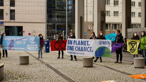 Vor dem Mitteldeutschen Rundfunk (MDR) wurde frühmorgens ein Denkmal aufgebaut, das den MDR an die Verantwortung der Medien in der Klimakrise erinnern soll. Es trägt die Aufschrift "27.5.2021 // 419 ppm CO2 // Wir werden nicht sagen können, wir hätten nicht gewusst, was zu tun war".