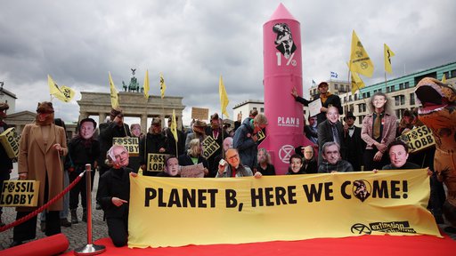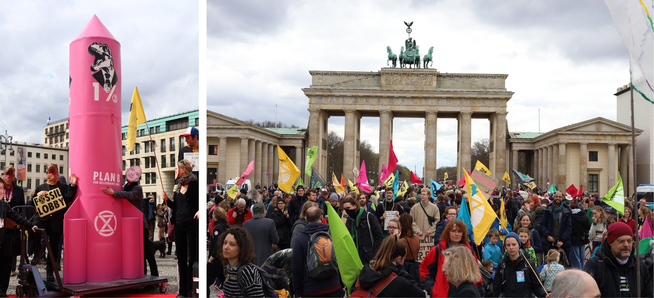 Die vier Meter hohe rosafarbene Rakete konnte trotz anfänglicher Schwierigkeiten mit einem Hubwagen vor das Brandenburger Tor gezogen werden. "Plan B - for Billionaires only" und "1%" sind auf ihr aufgedruckt. Sie steht für den Fluchtplan der Superreichen, auch ein Banner bekräftigt das Vorhaben. "Planet B - Here we come" lautet das Motto. Auf dem Pariser Platz direkt vor dem Brandenburger Tor lassen sich vielleicht noch Reisewillige einsammeln. #vacation