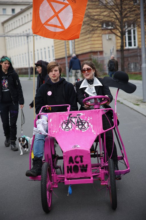 Nächster Halt: Mars! – Satirische Demonstration mit Riesen-Rakete von Extinction Rebellion