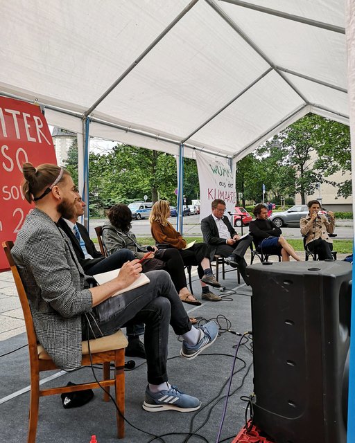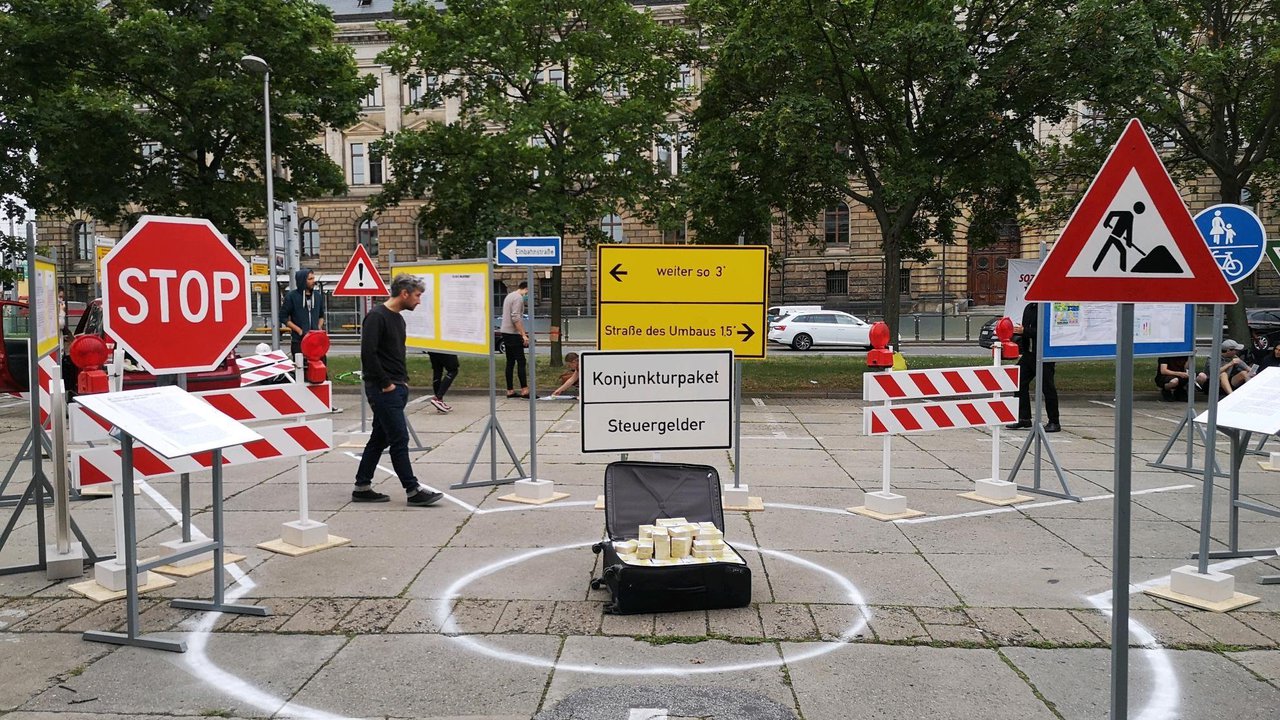 Etwa 100 Menschen haben sich vor dem Sächsischen Finanzministerium versammelt. Sie fordern ein ein Transformationspaket mit ambitionierten und notwendigen Klimazielen. Es gab Redebeiträge von Wilhelm Stein (von den Scientists for Future), von Norbert Rost (@Zukunftsstadtde) und Anne Nentwig von Greenpeace. Die Bitte an den sächsischen Finanzminister lautete: "Lassen Sie Geld bitte in die Zukunft fließen, nicht in die Vergangenheit."