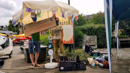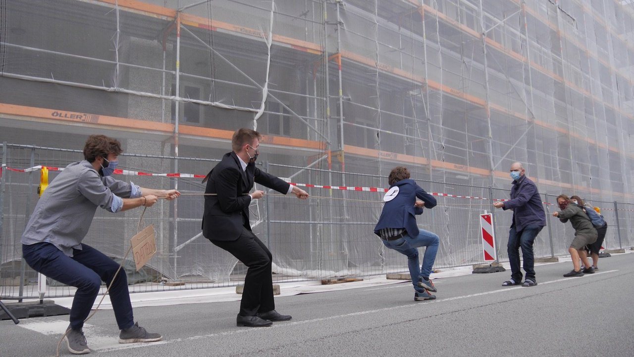In einem Tauziehen wurde um staatliche Rettungsgelder gekämpft: die Verschmutzerlobby von Lufthansa und RWE traten hier gegen die Klimalobby an. In den Redebeiträgen wurde deutlich: was Bundes- und Landesregierung als Rückkehr zur Normalität bezeichnen, ist die Rückkehr zu einem "business as usual", das gerade erst zu Klimakrise und Artensterben geführt hat.