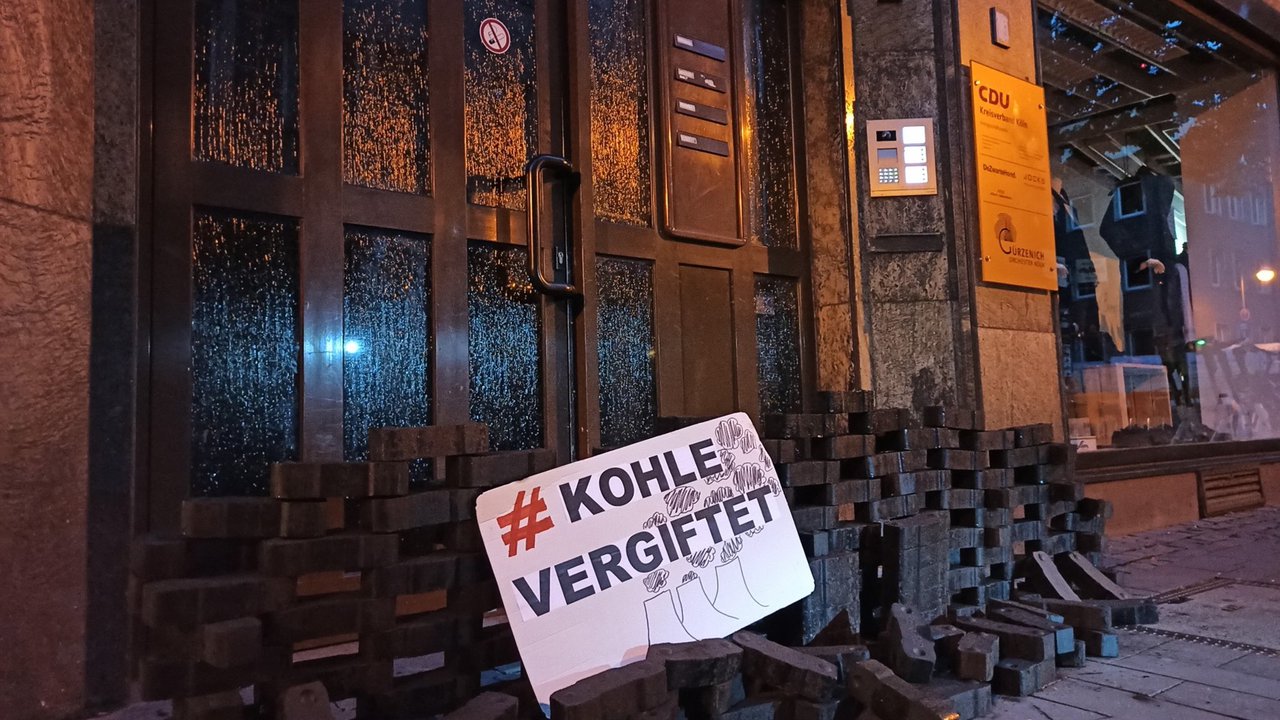 Eine Mauer aus Braunkohleblockiert die Geschäftsstellen der CDU/CSU und SPD in Köln. Die Forderung: Das Kohleeinstiegsgesetz darf so nicht verabschiedet werden. Wir werden weiterhin auf diejenigen hinweisen, die den Kohleausstieg verhindern!