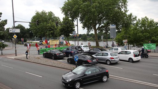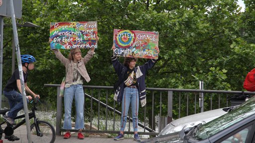 "Solidarität mit der Erde" (#BailoutThePlanet) war das Motto an der Oberbaumbrücke: Es ist die Zeit für ein Umdenken in unserer Gesellschaft. Viel zu oft haben wir bisher auf grenzenloses Wachstum gesetzt und damit massive soziale Ungleichheit, Menschenverachtung und Zerstörung der Natur gefördert.