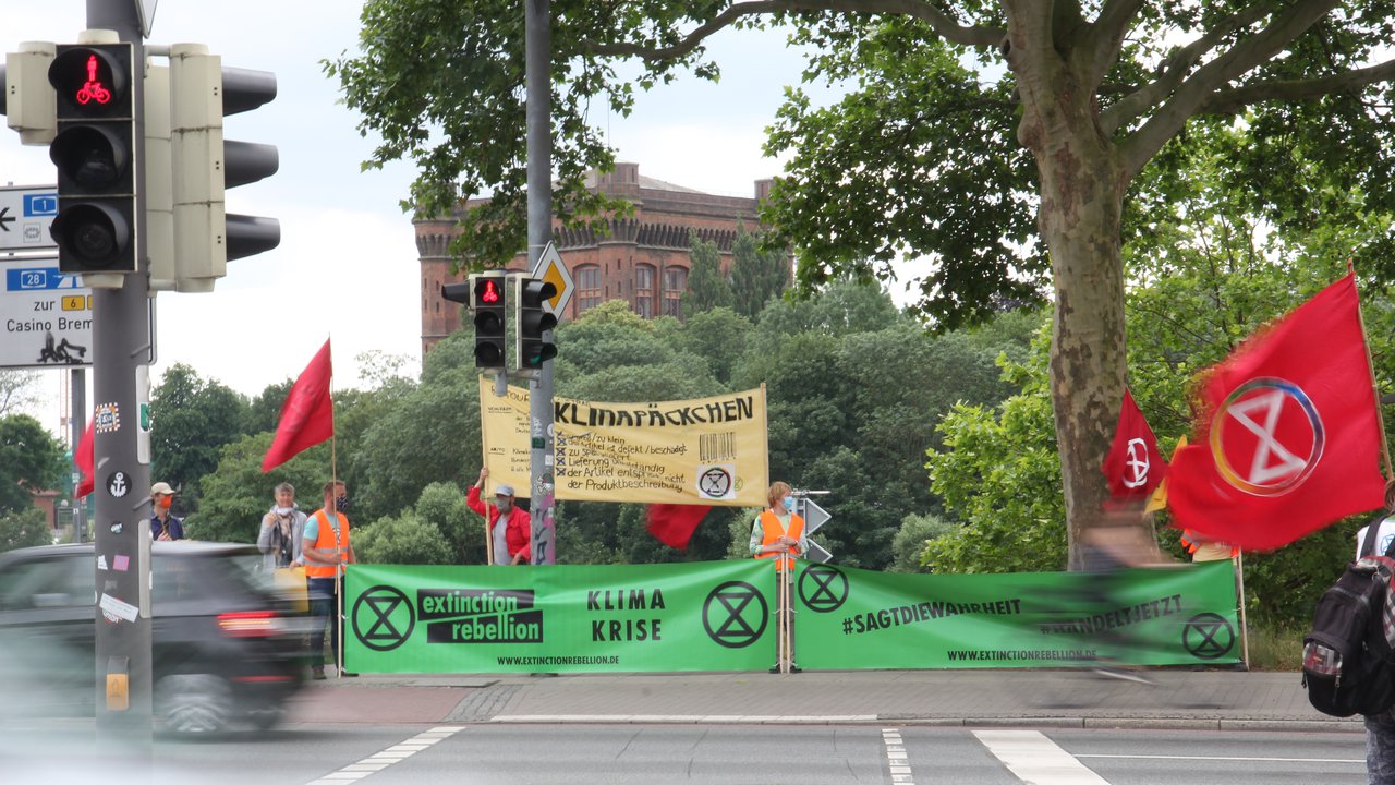 In Bremen wurde mit einem Swarming deutlich gemacht: Die Coronakrise geht vorbei, aber Klimakrise und Massenaussterben werden unser Leben noch Jahrhunderte prägen. Wie gravierend es wird, entscheidet sich heute und hier. XR Bremen hat Autofahrende eingeladen, einmal innezuhalten und sich einen Moment Zeit für Besinnung zu nehmen.