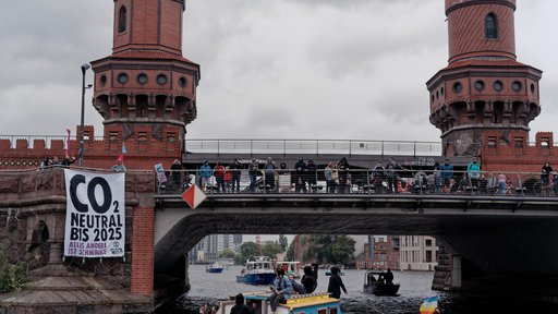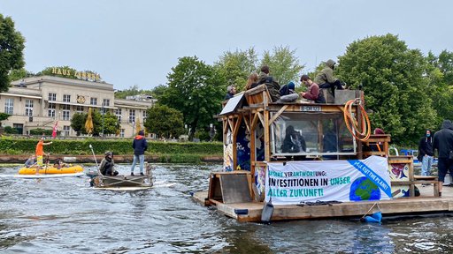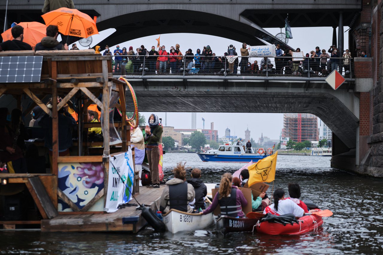 Berliner Umweltaktivisten protestieren mit Fahrrädern und Booten