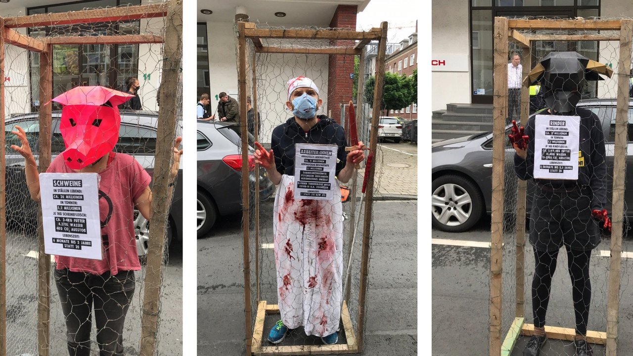 "Alles, was Menschen gefährden könnte, alles, was dem Einzelnen, aber auch der Gemeinschaft schaden könnte, das müssen wir jetzt reduzieren.", sagte Bundeskanzlerin Angela Merkel in ihrer Fernsehansprache am 18.03.2020 inmitten des Corona-Ausbruchs. #WirBleibenZuhause lautete die wichtige und notwendige Forderung zur Eindämmung der Pandemie. Für die Tierindustrie galt diese Forderung allerdings nicht. Dabei ist die Fleischproduktion mitverantwortlich für das Entstehen von Pandemien und besonders anfällig für Menschenrechtsverletzungen.