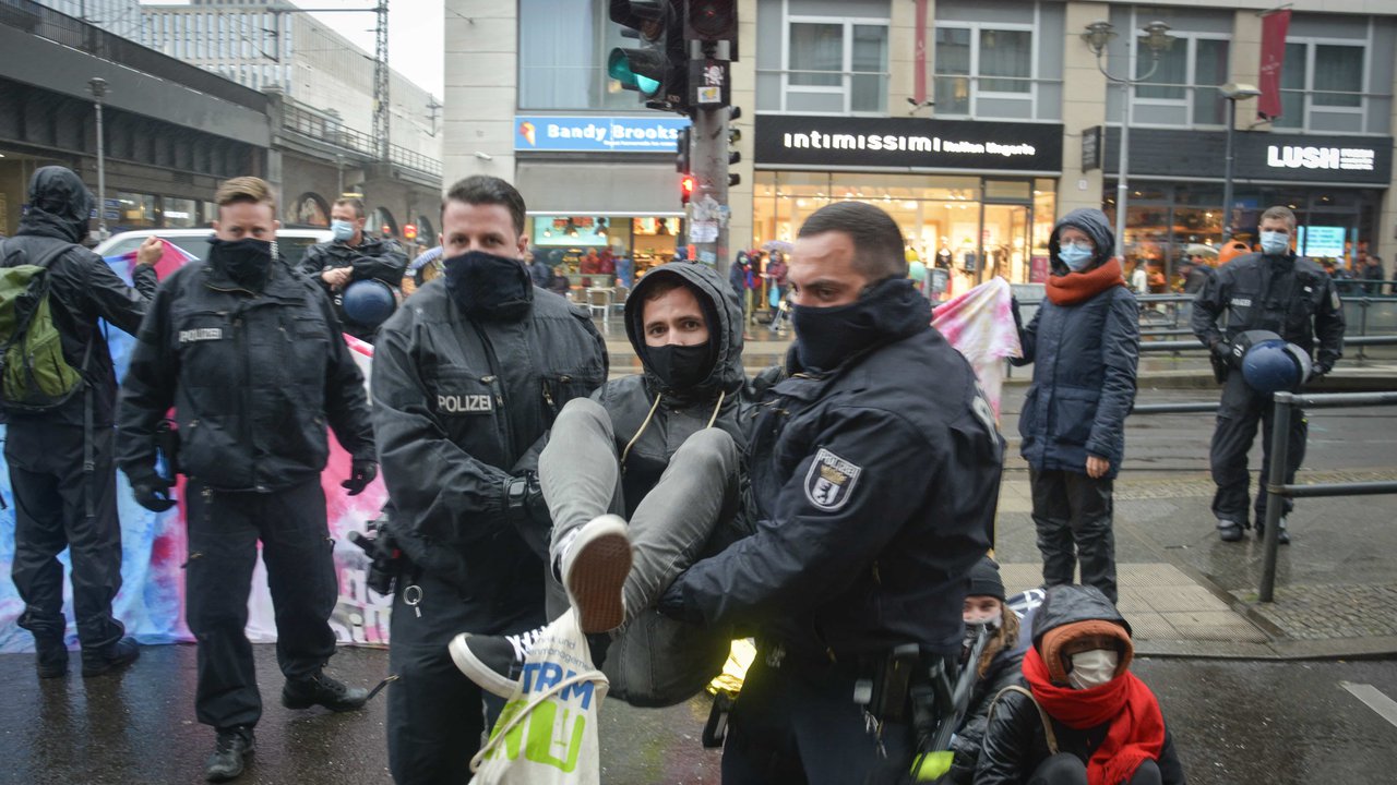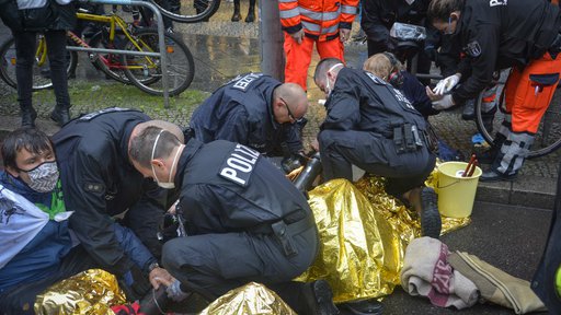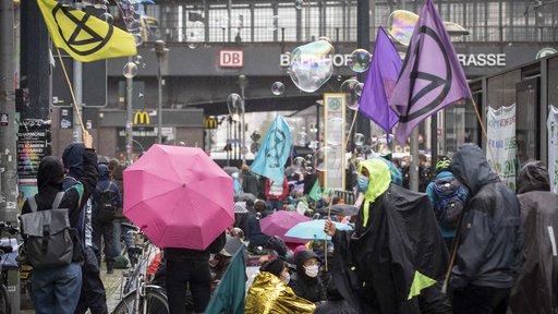 Extinction Rebellion blockiert Fahrbahn in Berliner Innenstadt
