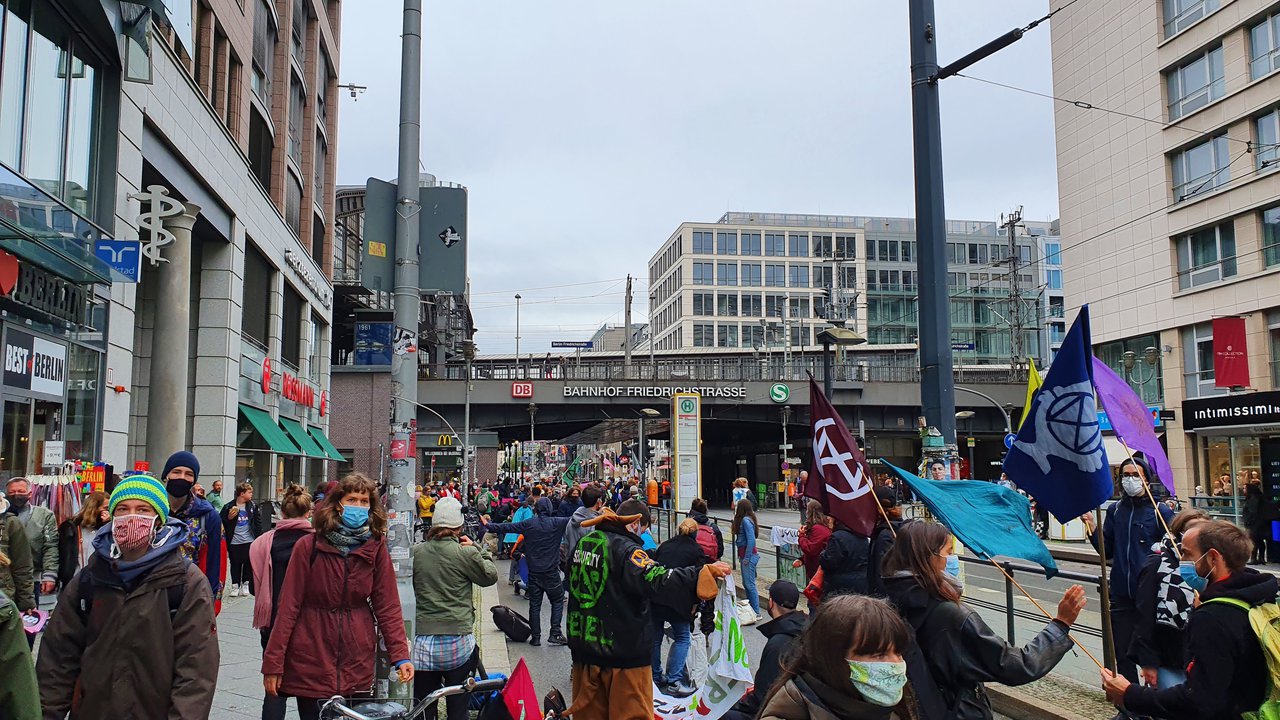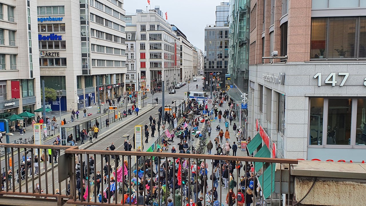 Extinction Rebellion blockiert Fahrbahn der Friedrichstraße