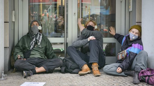 Gegenüber sitzt auch der Axel Springer Verlag, es kommt zu einem Schlagabtausch mit einem Chefredakteur der Welt. Gegen 09:07 Uhr tauchen Polizist:innen ohne Bezifferung auf, um 09:52 Uhr wird die Aktion von der Polizei als Versammlung gewertet. Die Stimmung bleibt gelassen und gegen 10:10 verlassen auch die kälteresistentesten Rebell:innen wieder ihren Platz vor dem Eingang. "Das sich die Fridays Sorgen um ihre Zukunft machen, verstehe ich", räumt eine von mehreren DEGES-Mitarbeiter:innen ein bei einem Gespräch vor einem Nebeneingang ein.