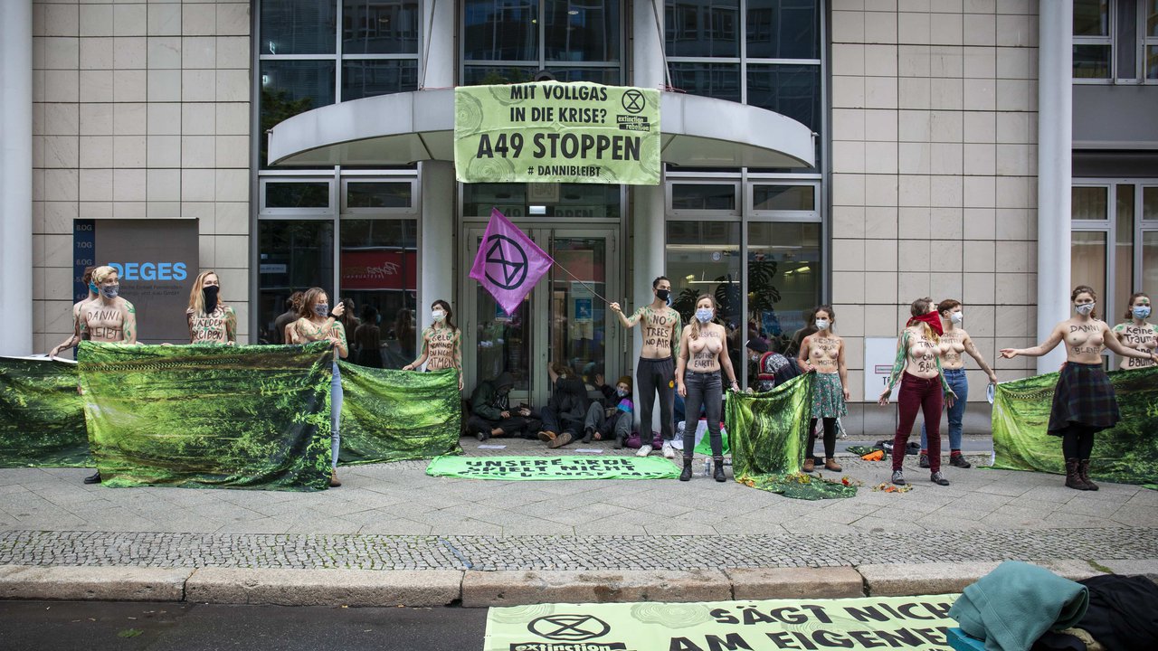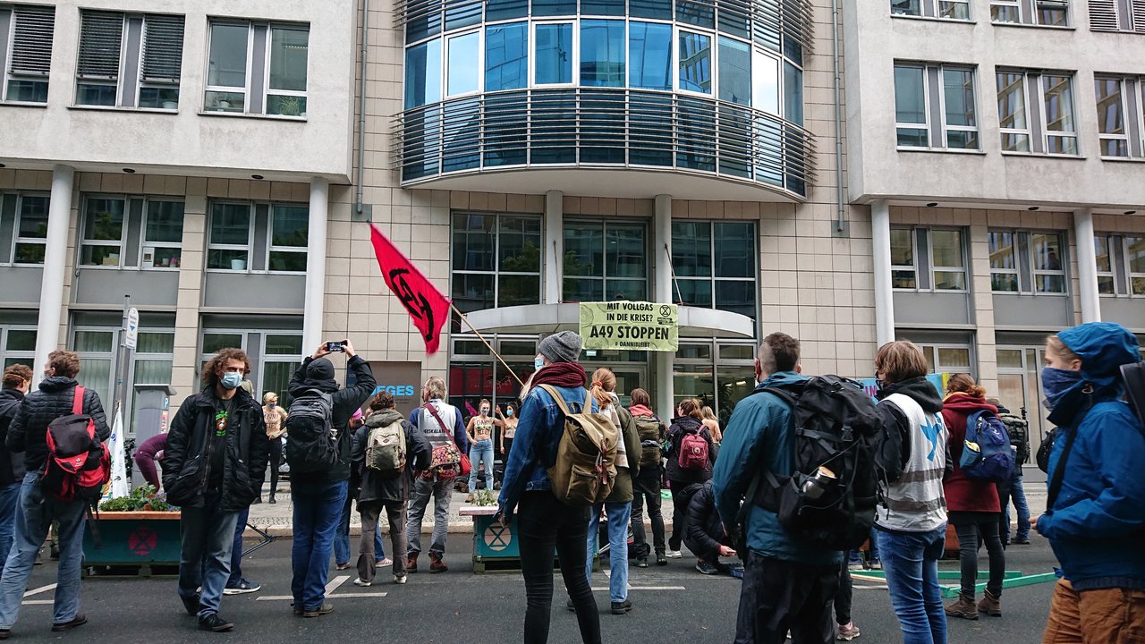 Extinction Rebellion blockiert Gebäude von Autobahnplaner