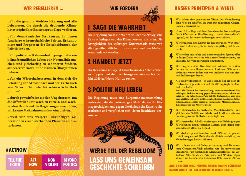 Folgende Flyer sind in der Bestellung enthalten: Stoppt die Zerstörung (A6), Wir rebellieren (faltbar)