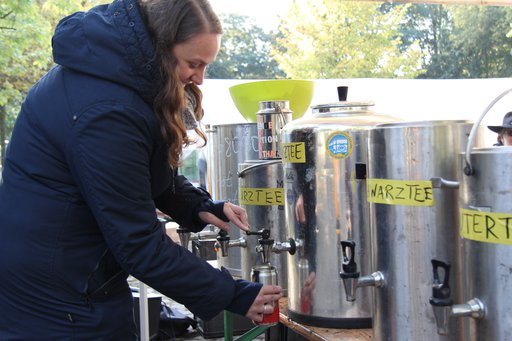 Es gibt köstliches veganes Essen, warmen Tee und gute Gespräche zm Mittagessen im KlimaCamp. (lsd)