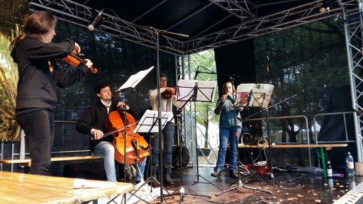 Zur Mittagspause gibt es auf der Bühne neben den Verpflegungszelten etwas klassische Musik von Mitgliedern verschiedener Berliner Ensembles.