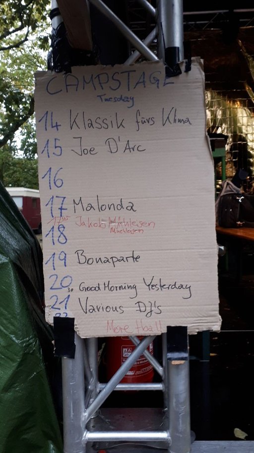 Heute Nachmittag und Abend spielen folgende Acts im KlimaCamp: