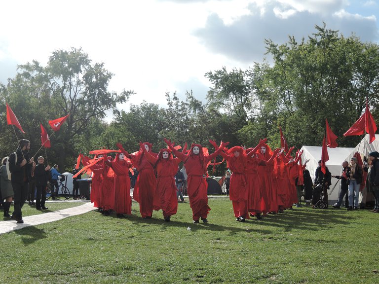 Derweil machen sich die Red Rebels auf den Weg in die Innenstadt. Vor dem Reichstag und an weiteren Orten werden sie für Einheimische und Touristen eine eindrückliche Performance aufführen.