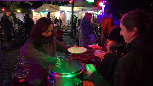 Dazu gibt es wieder einmal ein köstliches Abendessen, welches die Rebell:innen gegen eine kleine Spende erhalten können. Gerade nach einem kalten und verregneten Tag wie diesem, ist das für alle genau das Richtige, um wieder zu Kräften zu kommen. Auch hier bringen sich unter der Leitung von Fläming Kitchen viele Freiwillige ein.