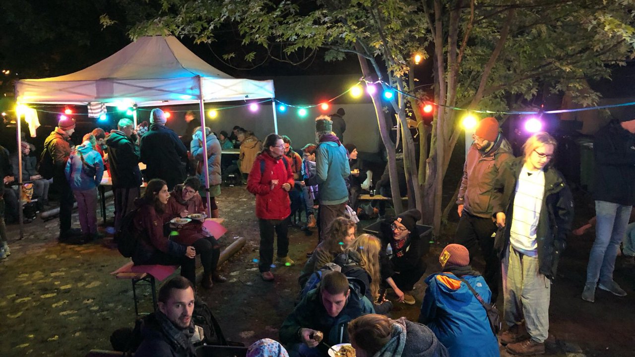 Nach etwas Yoga am Morgen und einem gesunden Frühstück von der Flaming Kitchen startete um 10 Uhr die Bürger:innenversammlung: Ines von Keller (Foresters For Future) erzählt etwas über „den Wald der Zukunft“, um im Anschluss das Thema mit allen Interessierten zu diskutieren.