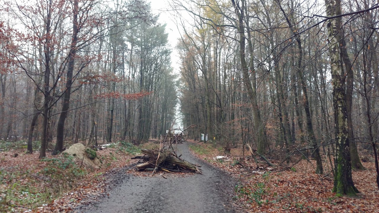‚Wüste‘ geht dorthin, wo sie früher so gerne gesessen hat, und ich gehe in den Wald, um zu begreifen, was hier passiert ist. Die Schneise ist abgezäunt. Auf der rechten Seite liegen akkurat aufeinander gestapelt die Stämme der Bäume, die hier Wald gewesen waren. Auf der linken Seite ihre Äste und Zweige. Eine Frau sagt im breiten Hessisch: ,,Ich kann das net glauben!“ Und fängt an zu weinen. Zwei Kinder werfen Tannenzweige oben in die Stacheldrahtrollen. Sie wollen den Zaun schmücken. Ganz weihnachtlich. Sofort sind Polizisten da. Sie lassen mit sich reden und drehen wieder ab.