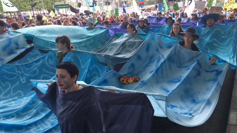 11:20 Adelaide City Tanzen, Trommeln, Blockaden (Twitter)