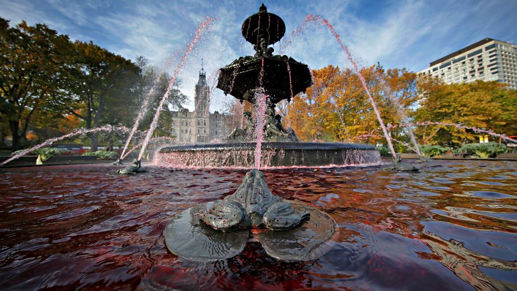 21:22 Quebec Fontaine de Tourny Das Wasser des Springbrunnens wurde rot (Twitter)