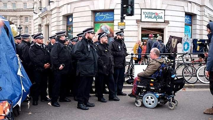 14:06 LondonTrafalgar Square. Die letzte Straßenblockade wird geräumt, die Rebell:innen verhaftet (Twitter)