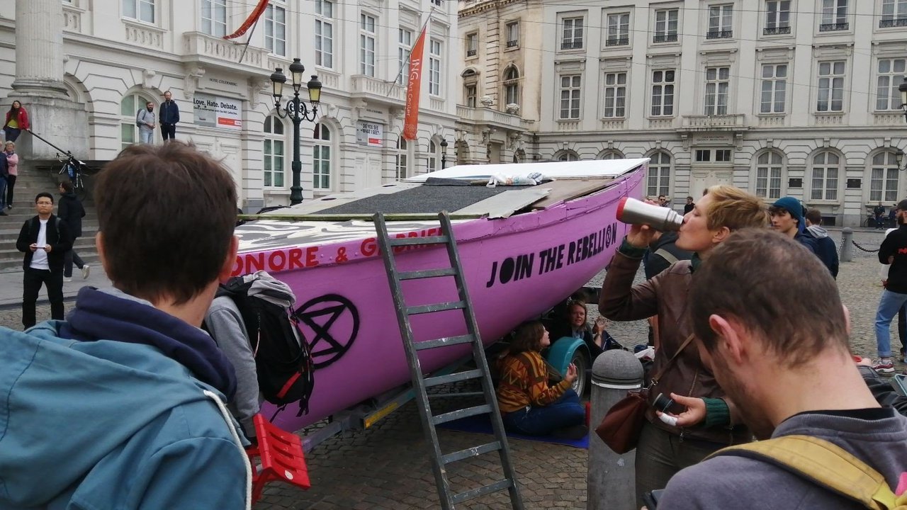 19:23 Brüssel Polizeiwache Eine Gruppe Verhafteter skandiert "Extinction! Rebellion" (Twitter)