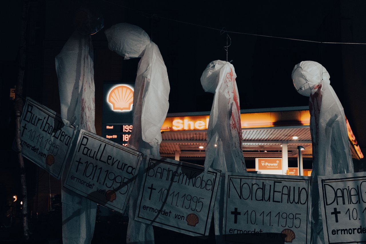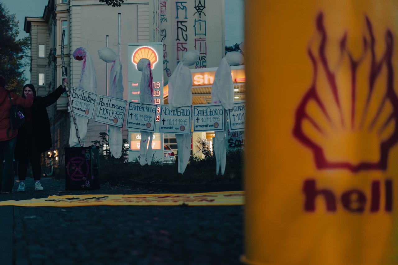 Wir fordern von Shell Wiedergutmachung, also die Bereinigung des Schadens. Dass Shell seit 30 Jahren immer noch unkontrolliert Öl aus offenen Ölquellen heraus pumpt, ist mit den aktuellen Klimazielen der Weltengemeinschaft nicht vereinbar. Wir fordern Shell damit auf, seinen Beitrag zu leisten und das zu tun, was der Konzern versprochen hat und nicht einfach weiterzumachen wie bisher.