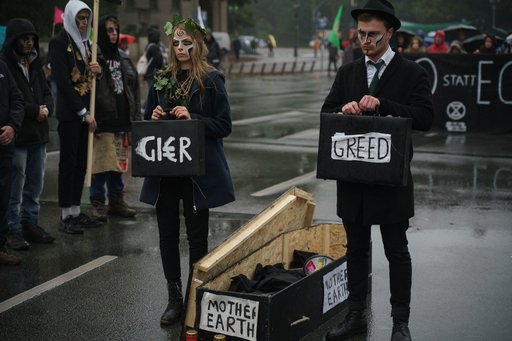An der Siegessäule wurde symbolisch "Mutter Erde" begraben, denn so wie wir derzeitig mit ihr umgehen, richten wir sie und uns zugrunde. (nv)