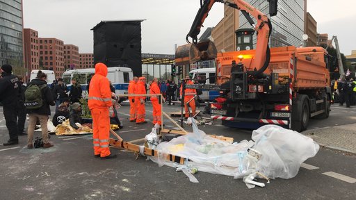 Nachdem die Polizei unsere Blockaden in der Nacht in Ruhe lässt und selbst auch etwas regeneriert, wollen sie uns morgen früh weiter vom Potsdamer Platz räumen.
