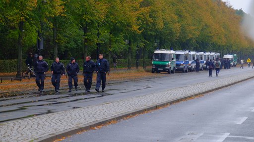 Aktuelle Schätzungen zählen ca. 1000 Protestierende (bunt) und 400 Polizist:innen (eher uniform).