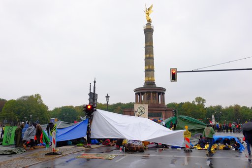 Mutig und überzeugt halten die Rebell:innen an der Siegessäule aus, im Wissen, dass wir für das Richtige kämpfen. Der Regen macht die Blockade etwas ungemütlich, aber wir bleiben standhaft. Wir haben für diesen Fall auch vorgesorgt und igeln uns mit großen Planen ein - eine spontane, recht gemütliche Zeltstadt entsteht. (nv)
