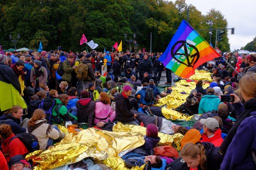 Gestern haben sich an der Siegessäule mutige Rebell:innen angekettet (sog. Lock-Ons), damit die Blockade dort bestehen bleiben kann. Diese Menschen können sich nicht mehr dort wegbewegen und werden konstant von einem Unterstützungsteam versorgt. Es ist für Essen, Trinken und Wärme gesorgt. Als Schutz vor dem Regen sind die Rebell:innen kreativ geworden, um die angeketteten Menschen zu schützen: Sind in Rettungsdecken wie in Kokons eingewickelt.