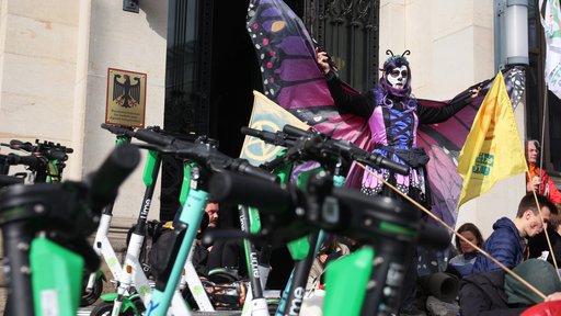 Am Bundesministerium für Verkehr und digitale Infrastruktur (BMVI) fand sich plötzlich eine Schar E-Roller rund um den Eingang und versperrte den Zutritt.