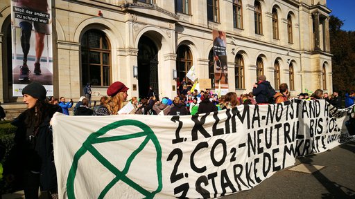 Acht mutige und verzweifelte Rebell:innen heften ihre Hände mit Kleber an den Eingang zum Bundesministerium für Umwelt, Naturschutz und nukleare Sicherheit (BMU). Drei der Aktivist:innen klebten sich an die Innentüren, so dass auch eine der Innentüren zum Bundesumweltministerium offen stehen bleiben muss. XR will damit bewusst Türen öffnen und zeigen: Wir lassen uns nicht mehr abschrecken und mit falschen politischen Entscheidungen abspeisen. Wenn wir mit unseren wissenschaftlich legitimierten Forderungen bei der Politik keine offenen Türen einrennen, werden wir diese mit unseren Protestformen selbst öffnen. Das BMU müsste eigentlich einer der wichtigsten Akteure des Klimaschutzes in Deutschland sein. Diesem Auftrag kommen sie mit dem aktuellen Klimapaket nicht im entferntesten nach.