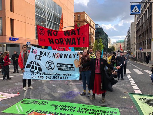 Außerdem gibt es Performances von den Red Rebels und XR Norway. Mit "No-Way Norway" machen die Rebell:innen darauf aufmerksam, dass ihre Regierung an Ölbohrungen festhält und somit die Augen vor der ökologischen Krise nicht nur verschließt, sondern sich aktiv an der Zerstörung beteiligt.