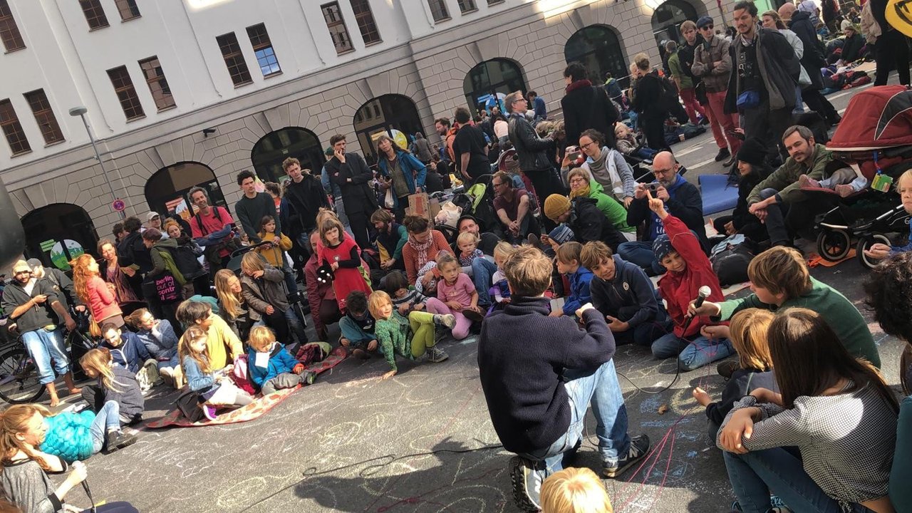 Bei XR kommen auch diejenigen zu Wort, die am stärksten von den Folgen der "Weiter So" Politik betroffen sein werden. Vor dem Bundesumweltministerium findet eine offene Versammlung für Kinder statt. Thema: Wie sollen die Erwachsenen sich verhalten? Es nehmen etwa 50 Kinder zwischen 6 und 13 Jahren an der Versammlung teil.